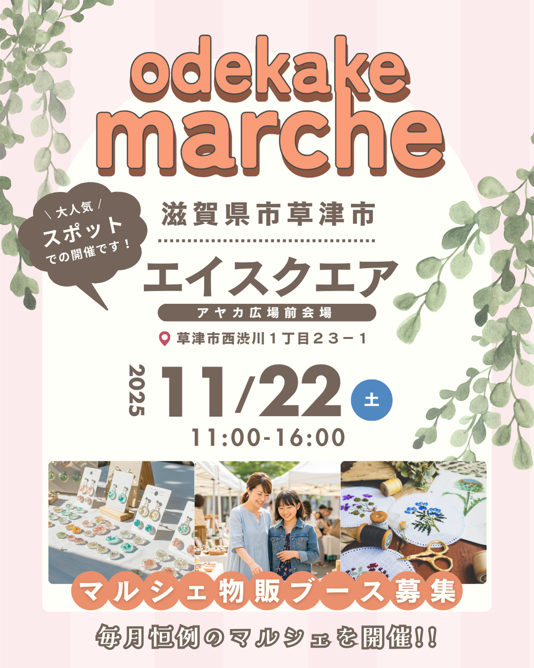 「JR草津駅」すぐの大型商業施設、エイスクエアで毎月恒例の『おでかけマルシェ』を開催!