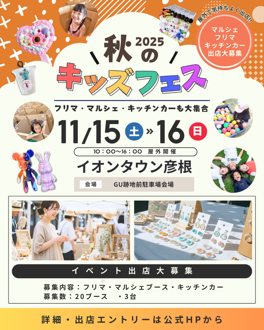 滋賀県彦根市のHOTスポット『イオンタウン彦根』で子ども~大人まで楽しめる「秋のキッズフェス」を開催します!秋の気候の中、大切な家族や仲間と思い出を作りに来ませんか?