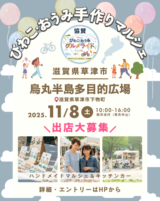 滋賀県草津市の琵琶湖のほとり『烏丸半島』で協賛イベントを開催します!マルシェ&キッチンカーが集まるイベントは、秋のお出かけシーズンにぴったり♪
